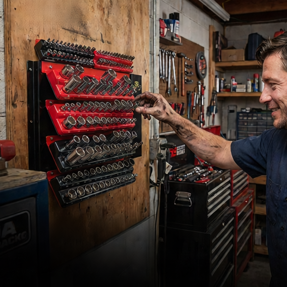 Faster tool access: Sockets are displayed visibly and within reach, so you spend less time digging through drawers.